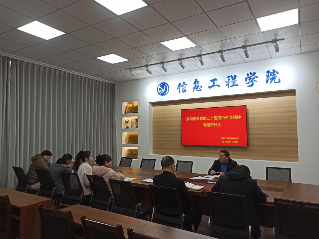 20251126日下午,9428cn太阳集团党总支以学习贯彻党的二十届四中全会精神,促进党建+业务深度融合为主题,在1306会议室召开了专题交流研讨会。学院领导班子成员、支部委员及基层教学组织负责人参加了会议,大家共同围绕党的二十届四中全会精神的核心要义,探讨党建与人才培养、科学研究、专业建设深度融合的实践路径,凝聚以高质量党建引领学院高质量发展的共识。