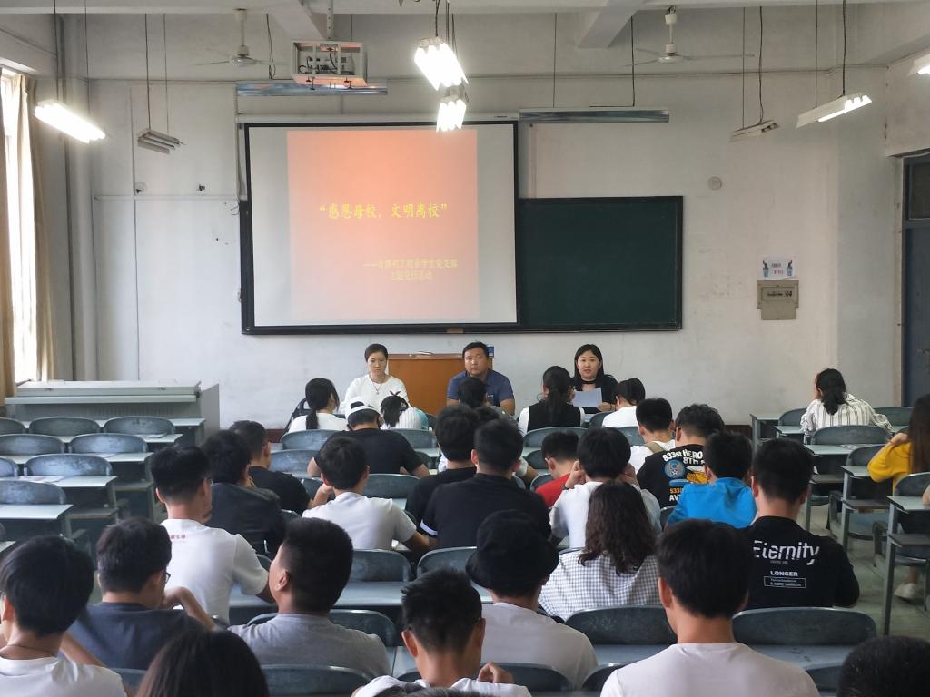 我院2019届毕业生党员毕业之际,为进一步加强毕业生党员教育管理,做好组织关系接转和党建材料的交接转递工作,根据学校有关文件精神,结合学院实际,2019年5月20日16时00分,我院学生支部在1302室开展2019届毕业生党员教育管理工作部署会,暨“感恩母校,文明离校”主题党日活动。我院学生工作办公室主任、学生支部书记赵杰文、支部全体辅导员以及2019届全体毕业生党员参加了此次会议。
