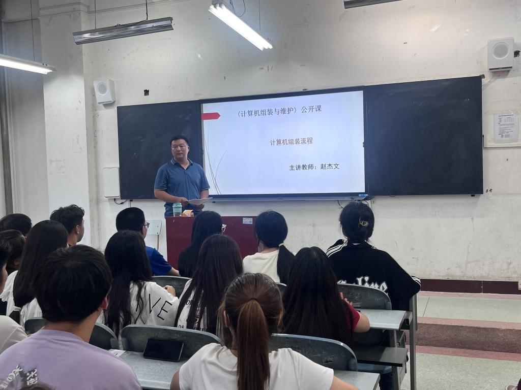 2024年5月27日下午,我院教师赵杰文在1教201教室进行了校级公开课《计算机组装与维护》,主题为《计算机组装流程》,学校80余名学生参加。赵杰文深入浅出地对组装计算机的准备工作、软硬件的安装顺序、注意事项及安装方法等内容进行了详细讲解,并就组装计算机实践操作注意事项与学生进行了深入交流探讨,本次公开课课堂教学理论与实践操作相结合,重难点内容清晰,理论内容精炼,学生认真听讲,掌握了计算机软硬件组装的详细流程等重要知识点,总体教学效果较好。