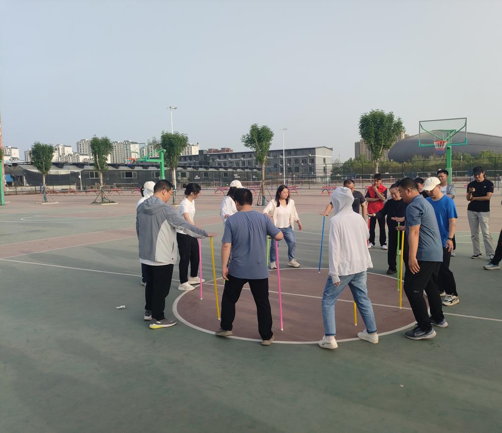 本次教职工“不倒森林”活动按照现场抽签顺序,男女会员组成三队,每队成员10人。队内全体成员都顺利完成一次移动即为成功1次。2分钟内,对于团队成功完成移动次数进行计数,完成移动次数最多的团队获胜。下午五时许,“不倒森林”趣味活动正式拉开帷幕,参赛者们手持特制的塑料杆,通过默契配合、灵活移动,努力让手中的杆子不倒。这不仅考验个人的平衡感,更考验团队成员间的沟通与协作。大家在一次次的尝试与调整中,逐渐找到了节奏和方法,比赛时现场掌声不断,加油呐喊声铿锵有力。