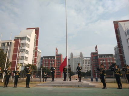升旗仪式于7:30分准时开始,国旗护卫队的旗手们迎着朝阳,以饱满的热情,庄严地护卫五星红旗。当激昂的《义勇军进行曲》响彻了整个校园时,同学们集体行注目礼,全场弥漫着一种庄严肃穆的气息。鲜艳的五星红旗冉冉升起,使同学们感受到了不断向上的斗志,点燃了同学们的爱国热情。